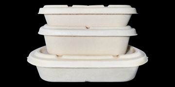 Made of sugar cane fiber, that is 100% biodegradable and compostoble. Certified food grade containers that are microwavable and oven-safe.